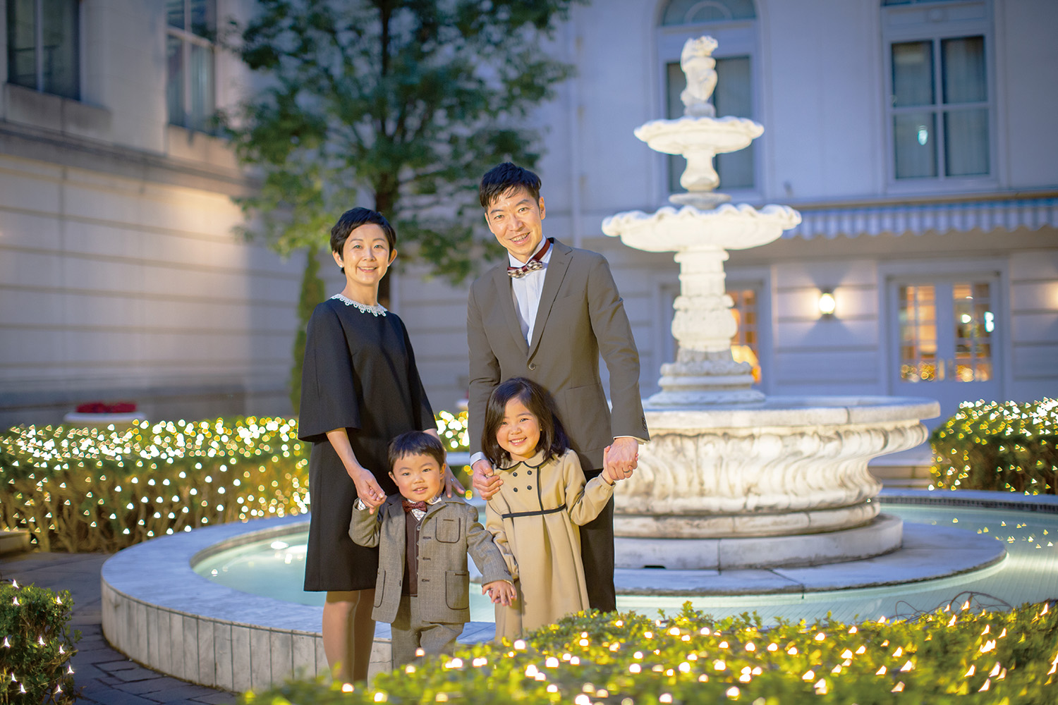 – Family shooting – 家族写真 ご家族の記録をアルバムに ご家族の特別な記念日や、何でもない日々の絆を写真に残しませんか。 ホテルニューグランド館内・中庭、山下公園沿い並木道など、外ロケーション撮影も可能です。 家族撮影プラン 1ポーズ撮影キャビネサイズ1枚(ニューグランド特製台紙付き) ・撮影場所:スタジオ、ホテルニューグランド館内・中庭、山下公園沿い並木道など ・1ポーズ撮影追加 ¥11,000(税込) ※基本平日のみのご案内になります。 ※ホテルへの館内撮影利用の確認、確定は2週間前からとなります。 ※フォトウエディング・卒業式・成人式・七五三・お宮参りにはご利用頂けません。各ページのロケーション撮影をご利用くださいませ。 ※ホテルニューグランド館内でのロケーション撮影は、ご披露宴パーティー、テレビ、映画、CMの撮影等の状況により、お時間のご変更や撮影中止となる事もありますので、予めご了承いただけますようお願い申し上げます。